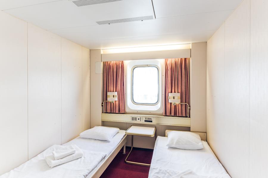 Diese Zweibettkabine mit zwei zusätzlichen aufklappbaren Betten bieten Belegung bis zu vier Personen. Die Kabine verfügt über ein großes Fenster und ist mit eigenem Bad, Klimaanlage und geräumigem Kleiderschrank ausgestattet. Das Frühstück ist nicht im Kabinenpreis inbegriffen.