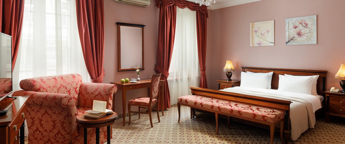 Das Budapest Hotel ist ein angesehenes Vier-Sterne-Haus in einem historischen Gebäude aus dem 19. Jahrhundert, das 1876 vom Architekten Freidenberg entworfen wurde. Es verbindet den Charme der alten Welt mit modernem Komfort und bewahrt die Eleganz des vorrevolutionären Moskaus, während es zeitgemäße Annehmlichkeiten bietet.Jedes Zimmer ist individuell im klassischen Stil gestaltet und mit modernen Einrichtungen ausgestattet, darunter Klimaanlage, kostenloses WLAN, Minibar, Safe, Teeset und Satellitenfernsehen. Gäste können ihren Tag mit einem reichhaltigen Frühstücksbuffet mit warmen und kalten Speisen beginnen und später in der gemütlichen Bar mit einer feinen Auswahl an Getränken und leichten Mahlzeiten entspannen.