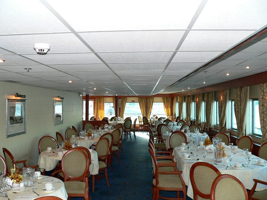 An Bord gibt es zwei Bars, ein kleines Souvenirshop, zwei Restaurants und einen Konferenzraum. Alle Kabinen sind Deluxe-Kategorie mit einem großen Panoramafenster und sind mit Mini-Kühlschrank, Sat-TV, Radio, Safe, individueller Temperaturregelung ausgestattet. Die Kabinen verfügen über ein eigenes Bad.