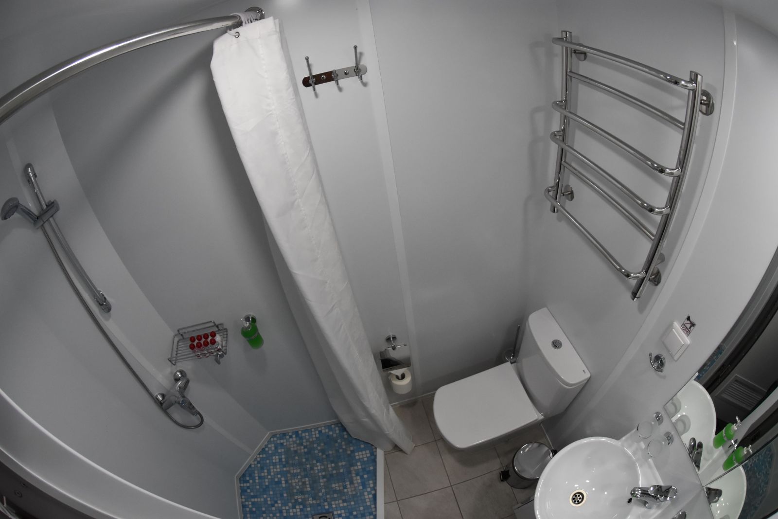 - Standard-Doppelkabine - die Dusche befindet sich hinter dem Vorhang. Foto ansehen.