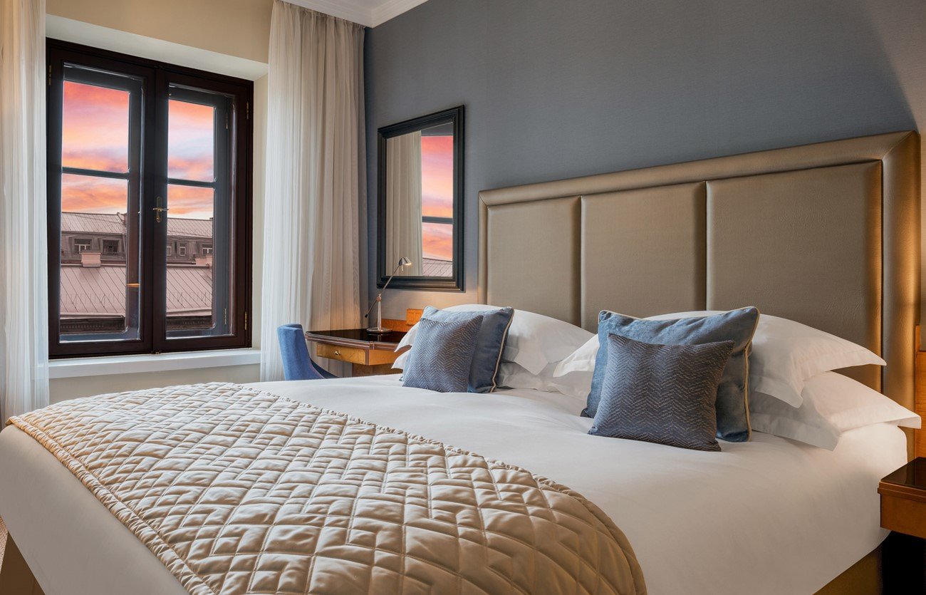 Das Corinthia Nevskij Palace verfügt über 282 geräumige und komfortable Zimmer, darunter 30 Suiten (1 Präsidentensuite, 21 Executive Suiten und 8 Junior Suiten); Executive Club Etage mit Executive Lounge; 15 Smart-Zimmer, speziell abgestimmt auf die Bedürfnisse von Geschäftsreisenden; 237 Deluxe Zimmer und Classic Zimmer (110 Nichtraucher-Zimmer).Alle Zimmer sind mit zentraler Klimaanlage und Heizung, Sprinkler- und Rauchmeldesystem, Safe, Minibar und Internet-Datenschnittstelle, Direktwahl-Telefon und Anrufbeantworter, Satelliten-TV - mit 18 internationalen und 6 lokalen Sendern wie CNN, BBC World, BBC Prime, Eurosport, Euronews, TV-5 (Frankreich), RTL, RAI UNO, VIVA etc. - ausgestattet.